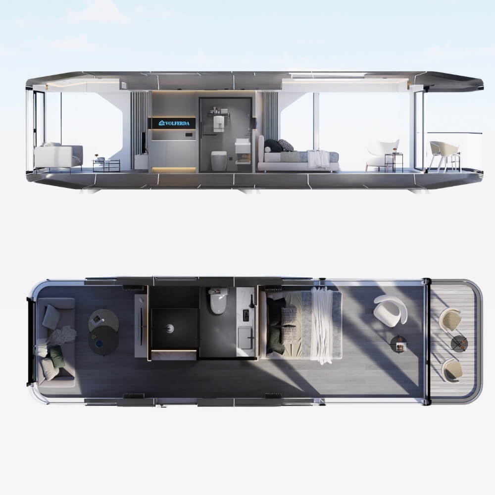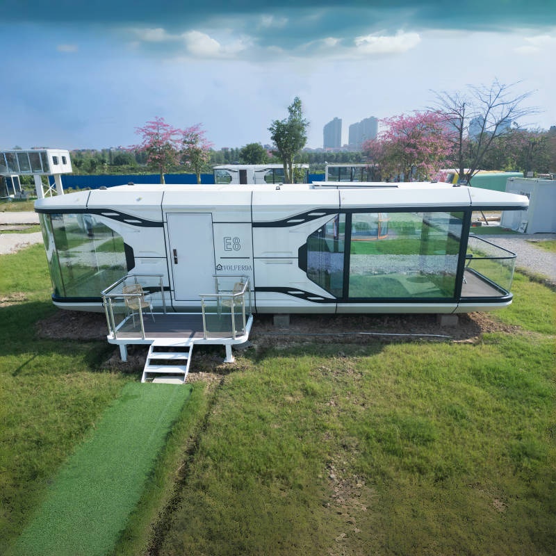 Delivery method: there are two delivery methods for capsule house, the whole hosue and disassembled modular houses. For the whole house delivery, the house will be shipped in 40 flat rack container due to the wide width of the house up to 3.2m, so the shipping costs are relatively high and suitable for only 1-2 houses. For the disassembled modular houses delivery, the house will be shipped in 40 HQ,which saves shipping cost and is suitable for purchasing large quantity of houses.